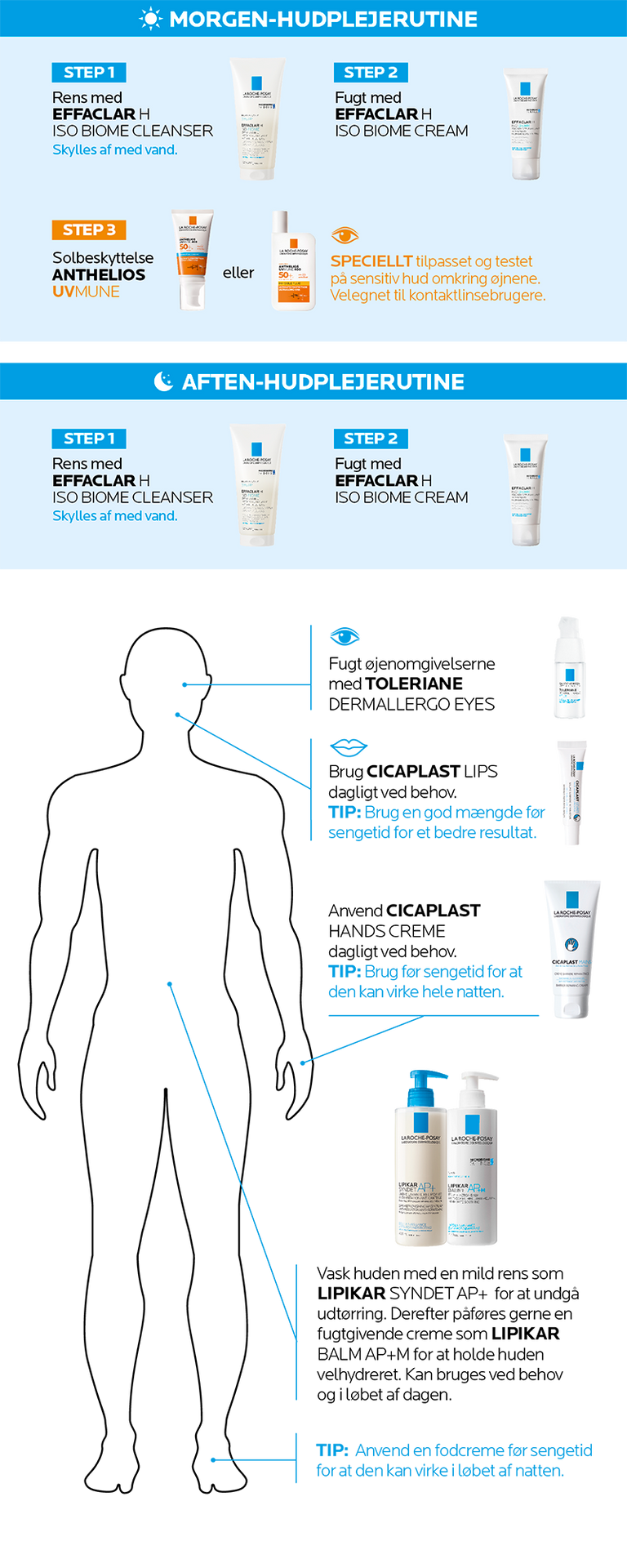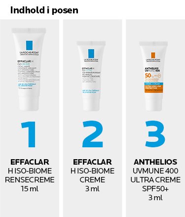 Vi foreslår at starte med Effaclar rensegel og Effaclar DUO+M creme 2 gange daglig efter din hud har stabiliseret sig.